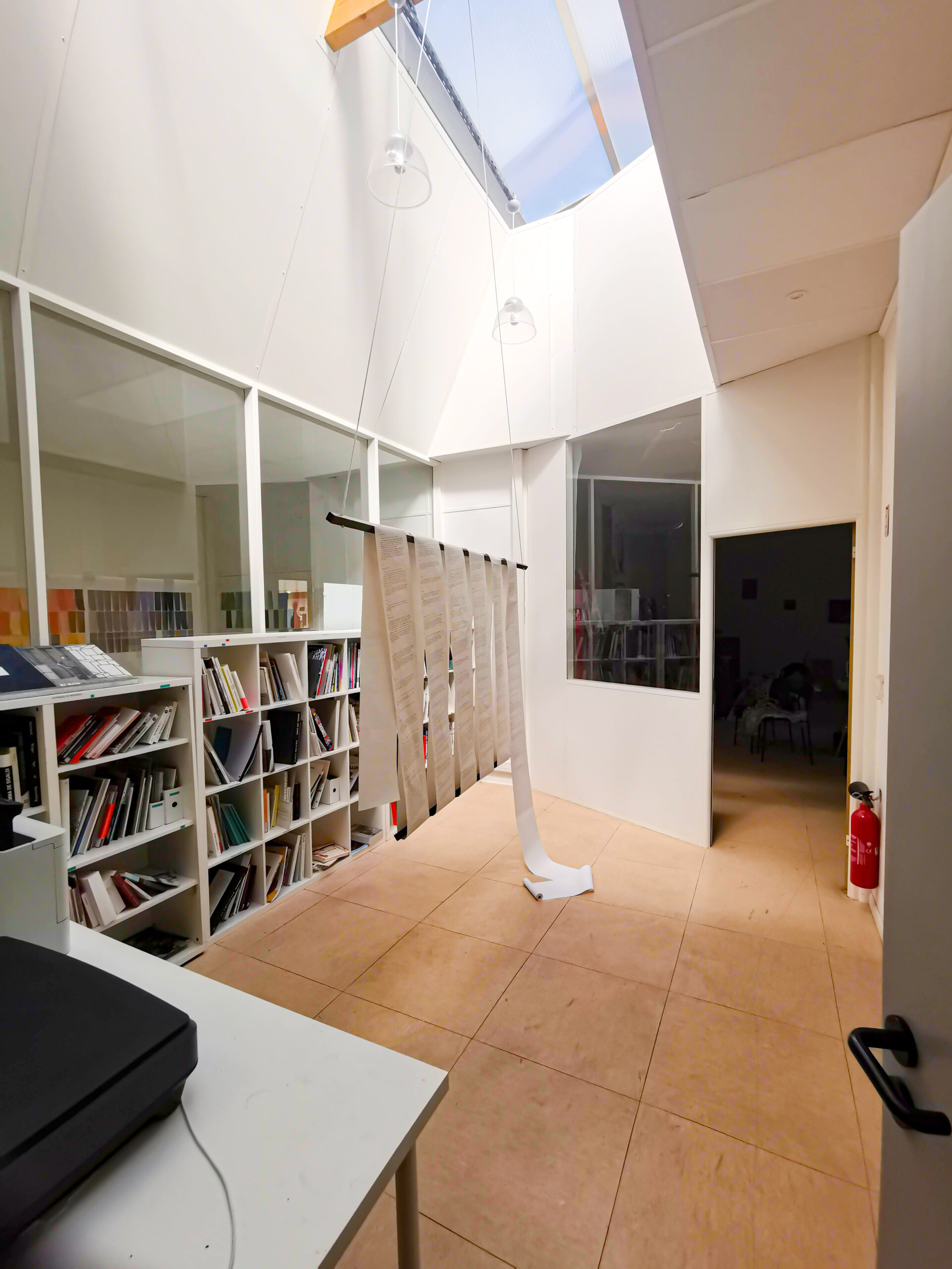 Installation par suspension d’une édition rédigé à la machine à écrire.